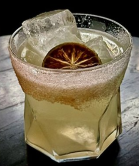 Combine all ingredients into a cocktail shaker with ice and shake well. Double-strain into an Old-Fashioned glass, rimmed with salt.
